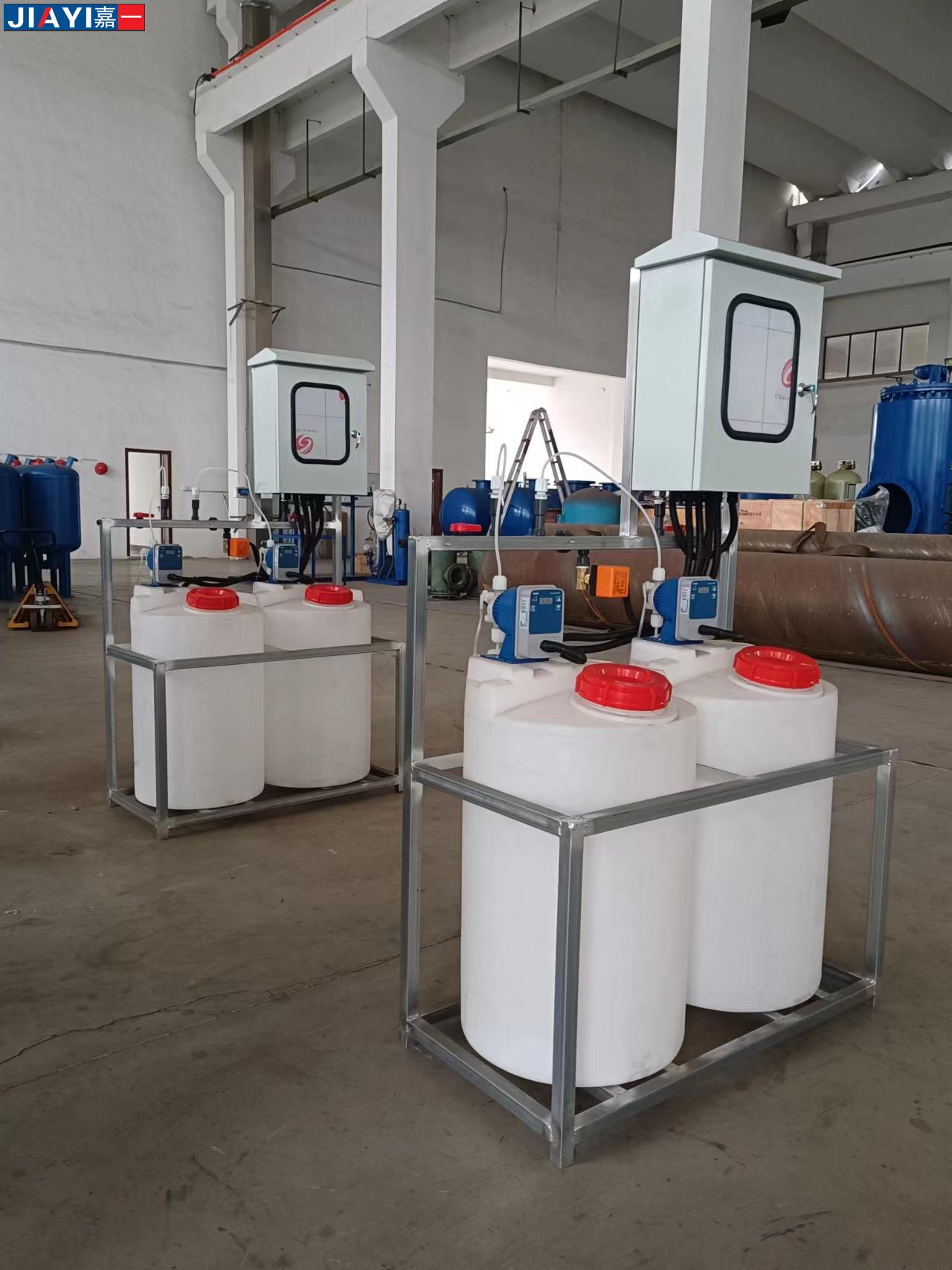 全自動(dòng)加藥裝置采用時(shí)間程序控制,此控制方式無(wú)需儀表的支持,首先根據(jù)系統(tǒng)的運(yùn)轉(zhuǎn)需要設(shè)定自動(dòng)加藥的周期、加藥量、加藥時(shí)間和加藥頻率。在以后的系統(tǒng)運(yùn)轉(zhuǎn)過(guò)程中,到加藥周期,計(jì)量泵自動(dòng)打開(kāi)加藥,加到規(guī)定的時(shí)間計(jì)量泵關(guān)閉;到排污周期,計(jì)量泵停止加藥,排到規(guī)定的時(shí)間后,計(jì)量泵繼續(xù)開(kāi)啟,補(bǔ)充排污損失掉的藥劑,把系統(tǒng)的含藥量維持在正常的水平、加到規(guī)定的時(shí)間計(jì)量泵關(guān)閉。
